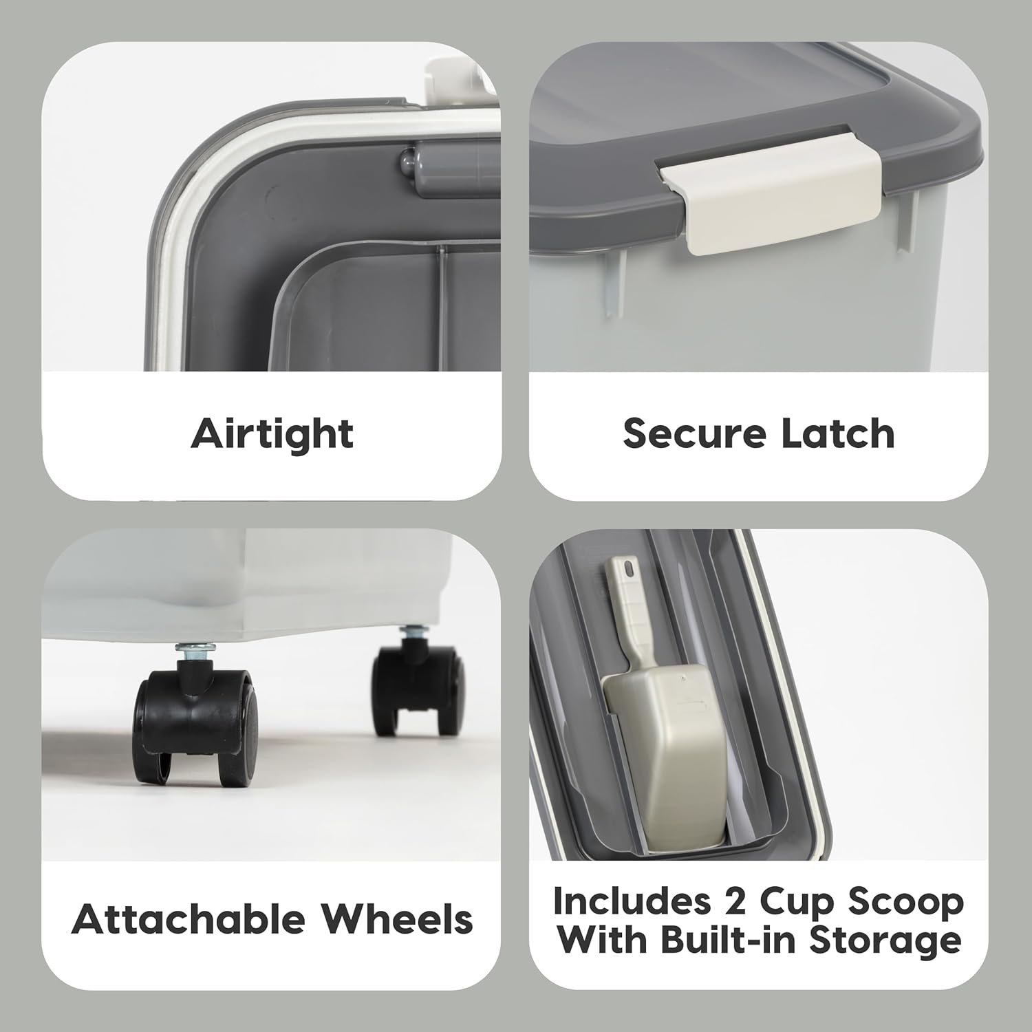 - Wheeled pet bin: Portable storage bin design with smooth-rolling wheels lets you easily move heavy loads even when the bin is full.