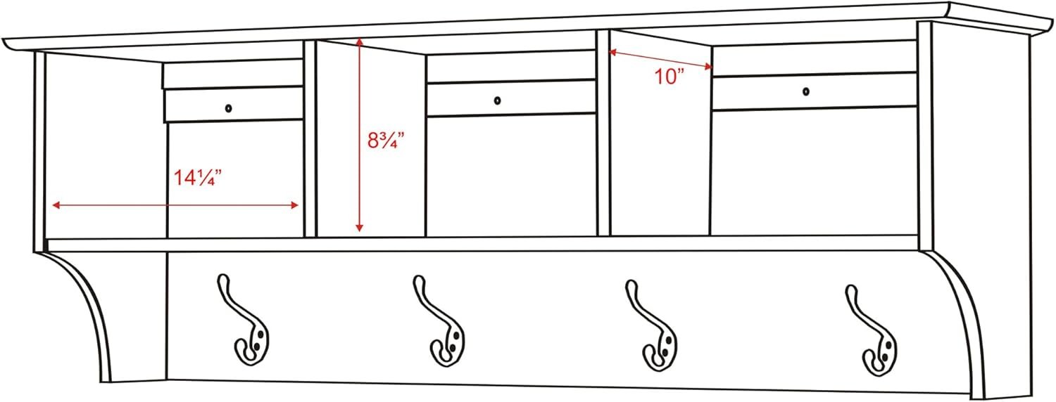 RiverRidge Home Wall Mounted Coat Rack – solid wood finish, hooks and shelf included.
